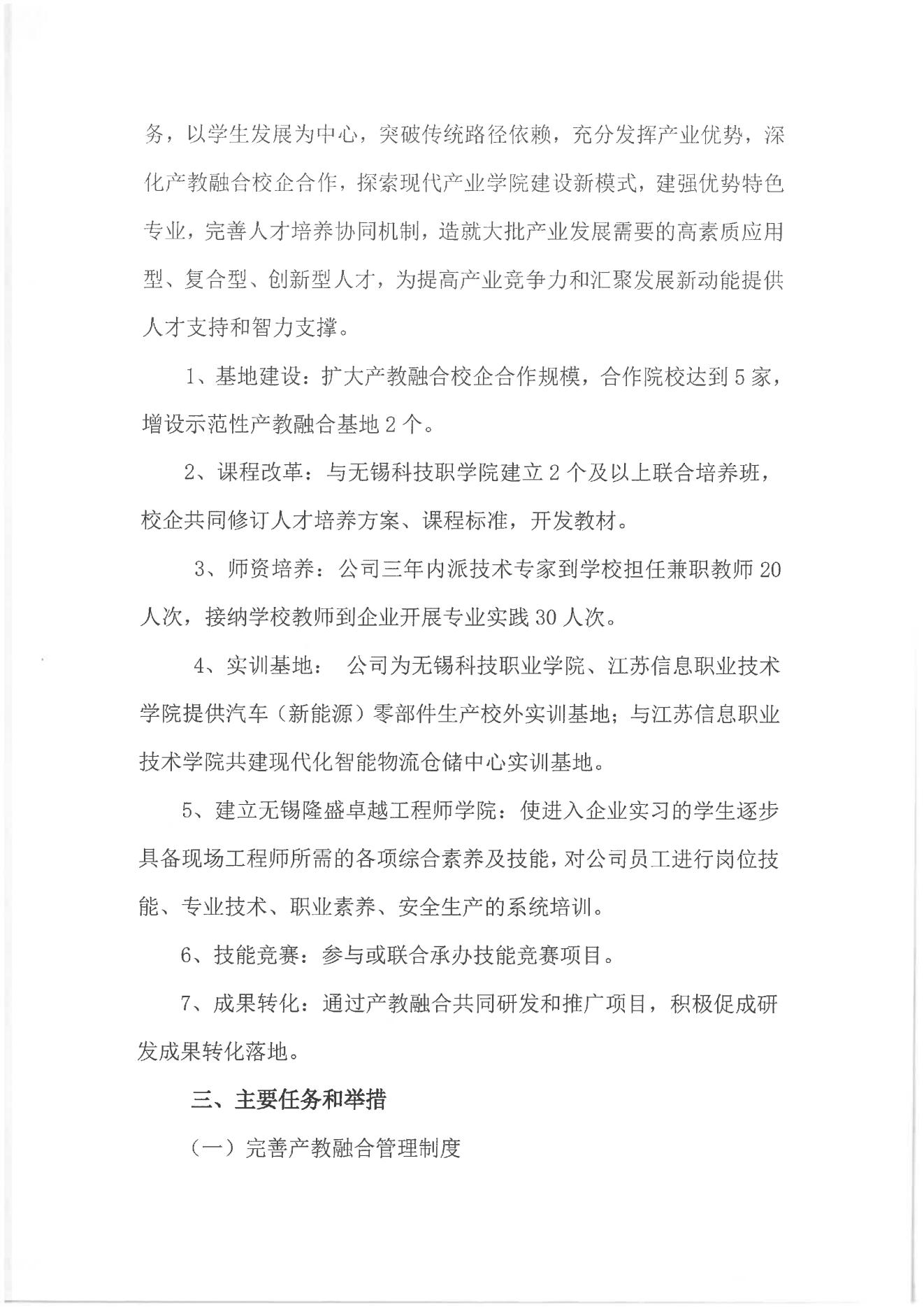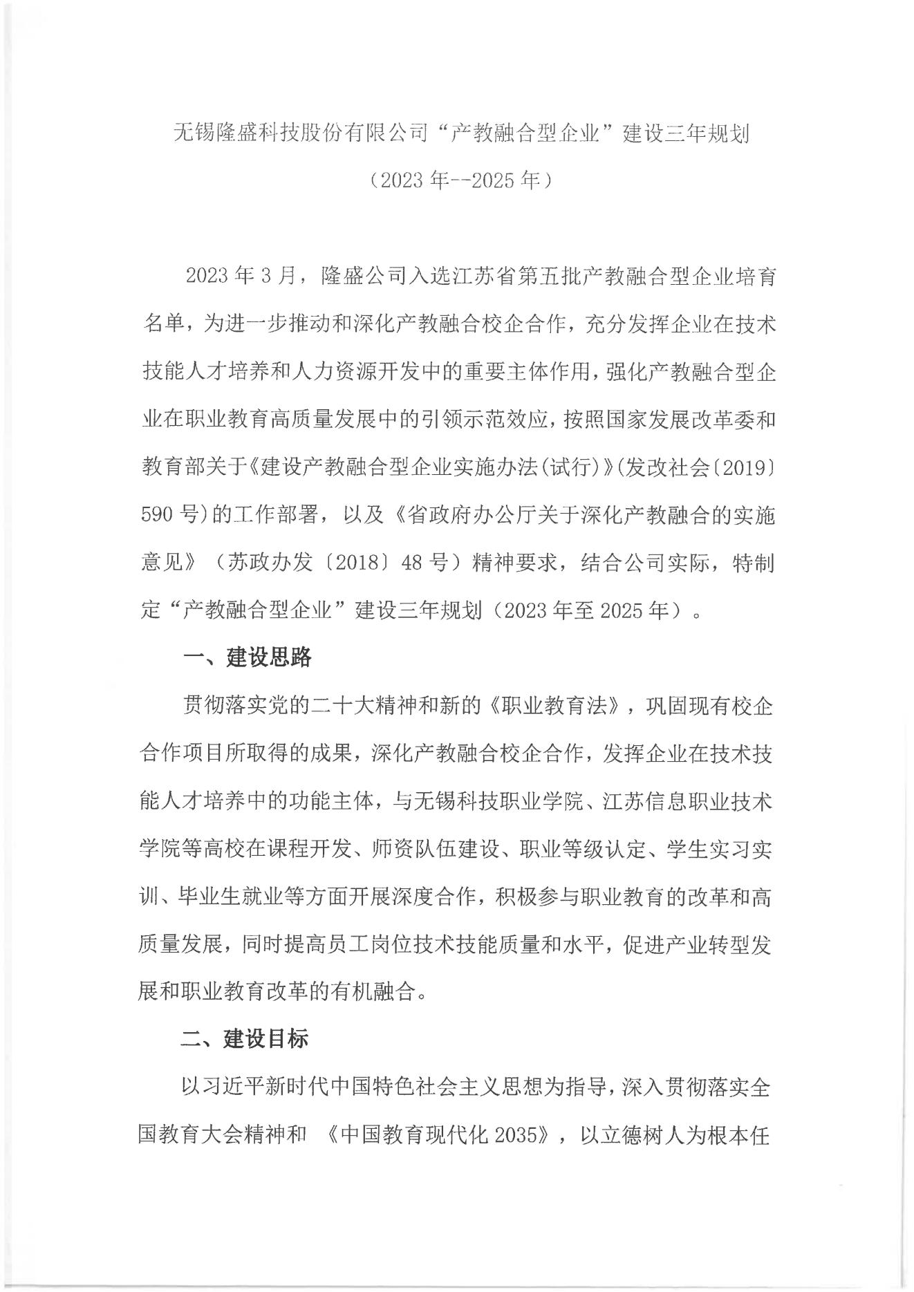 無錫隆盛科技股份有限公司“產教融合型企業”建設三年規劃
